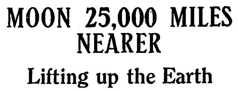 "Moon 25,000 miles nearer.  Lifting up the earth."  From The Children's Newspaper, 1919.