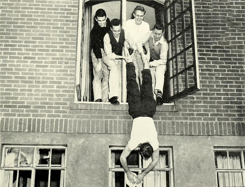 #vintage photo #vintage yearbook #upside down #1940s #vintage men #window washer #window cleaner