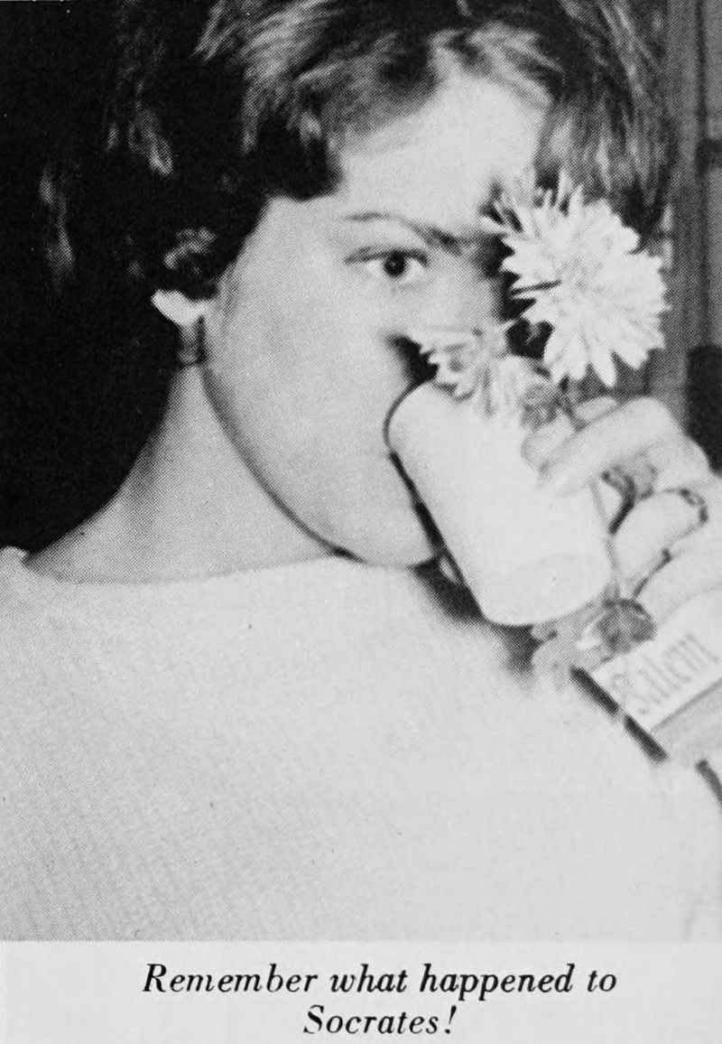 "Remember what happened to Socrates?"  From Wheaton College's 1964 yearbook.