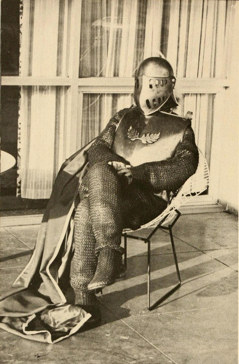 So refreshing to see a knight simply relaxing on the patio, not formally posing like in all the other photos. One also recalls this knight doing a handstand for the fun of it.