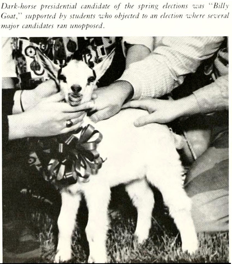 Can you see what's wrong with this photo? If only the photographer had shifted just a few inches to the right, it would have looked like the gentleman had actual horns. This sort of lost opportunity is heartbreaking. From Eastern Kentucky State College's 1966 yearbook.