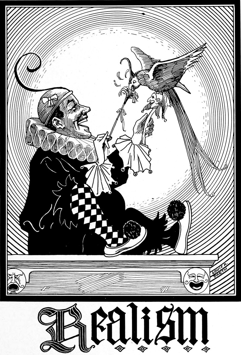 #vintage illustration #jester #vintage yearbook #yearbook #bird #marotte #illustration #realism