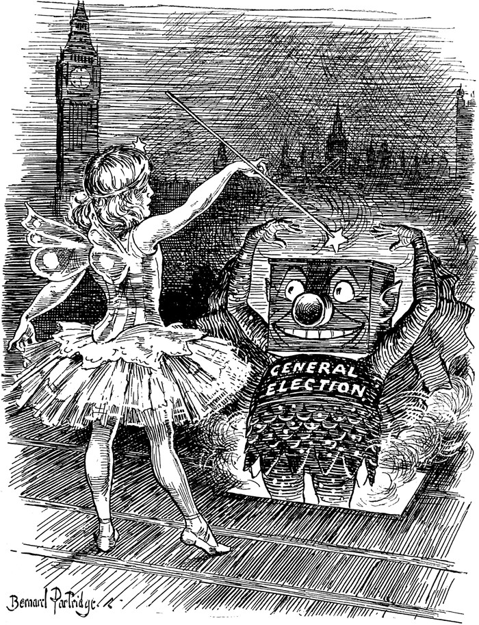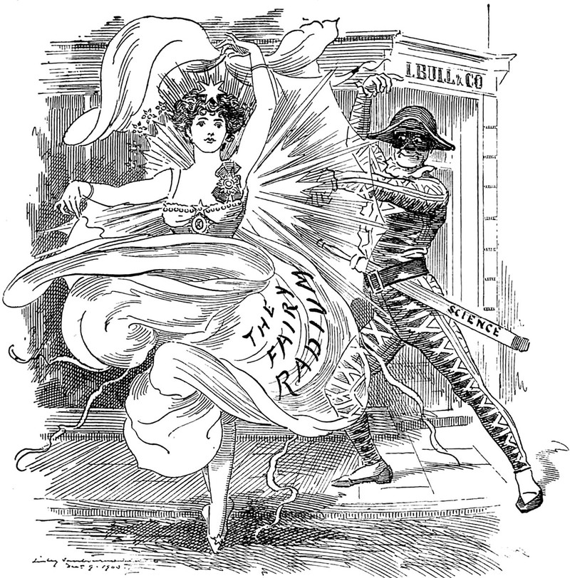 A glass bottle from modern civilization is tossed into another world: an unmistakable precursor to the 1980 comedy film The Gods Must Be Crazy. From Punch, 1902.