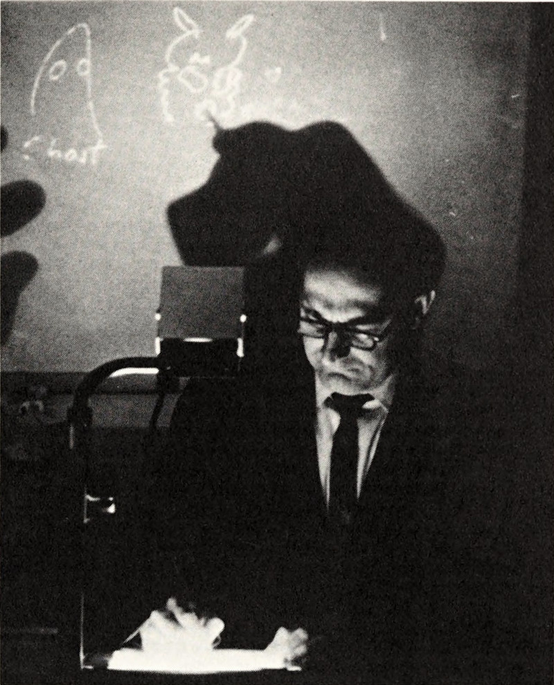 A ghost on the chalkboard.  From Broome Technical Community College's 1966 yearbook.