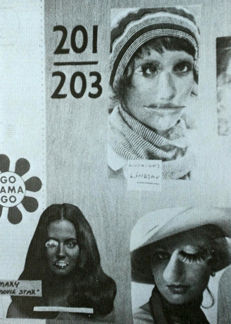 If you immediately suspected that this image was cursed, you were correct. The least of it is the uncanny double eye over the pyramid. In this space-folded, seemingly mirrored world, there is no way forward or back, only right. This image must not be used for any out-of-body journeying. The endpapers from New Haven's 1974 yearbook.