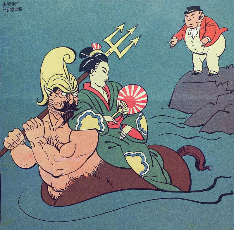 Uncle Sam as an ichthyocentaur. From Kladderadatsch, 1935.