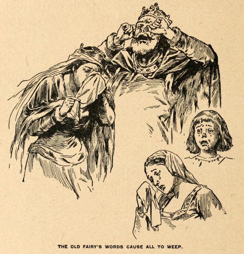 Answers: Rotate the image counter-clockwise and look for bearded King Neptune and his trident in the space between the tree and the hillside. The smaller mermaid's face is in the water touching the shoreline, below left of the shell.