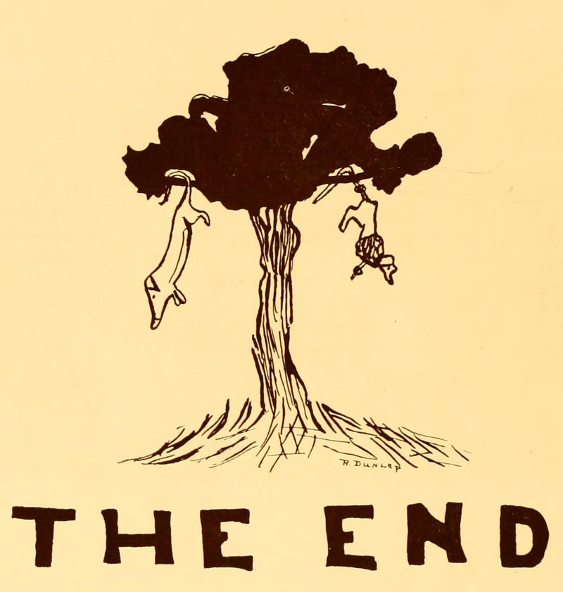 #vintage illustration #vintage yearbook #yearbook #the end #illustration #up a tree