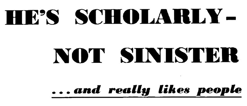 "He's scholarly—not sinister ... and really likes people."  From Australian Women's Weekly, 1960.