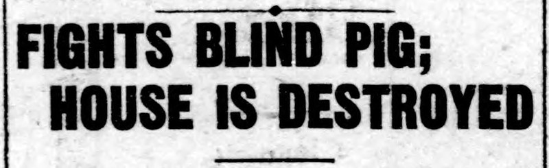 "Fights blind pig; house is destroyed."  From The Duluth Herald, 1913.