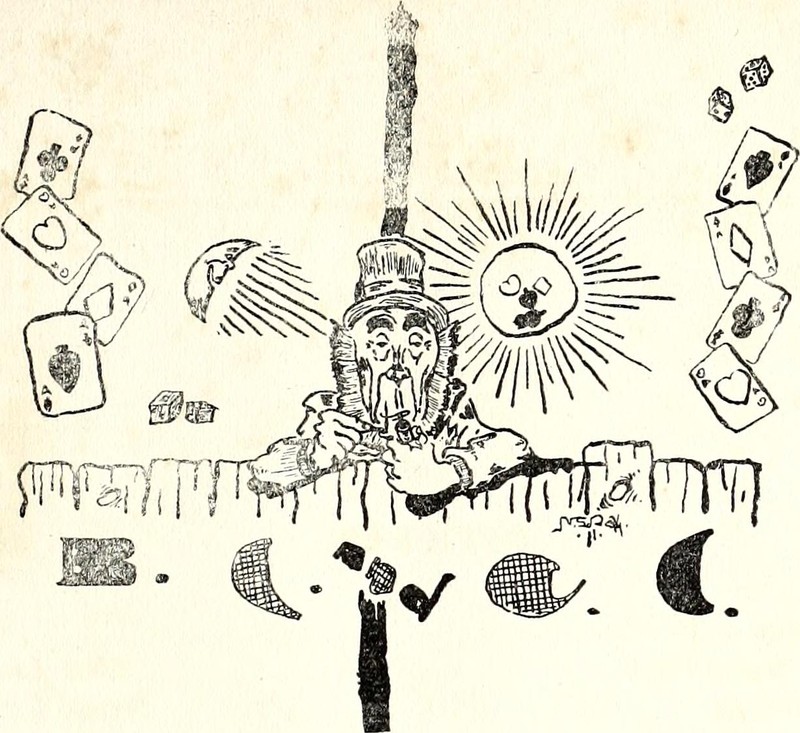 We don't often encounter sun faces comprised of playing card suits. This one appears in Bingham Military School's Sword and Rifle yearbook, 1903. See How to Hoodoo Hack a Yearbook.