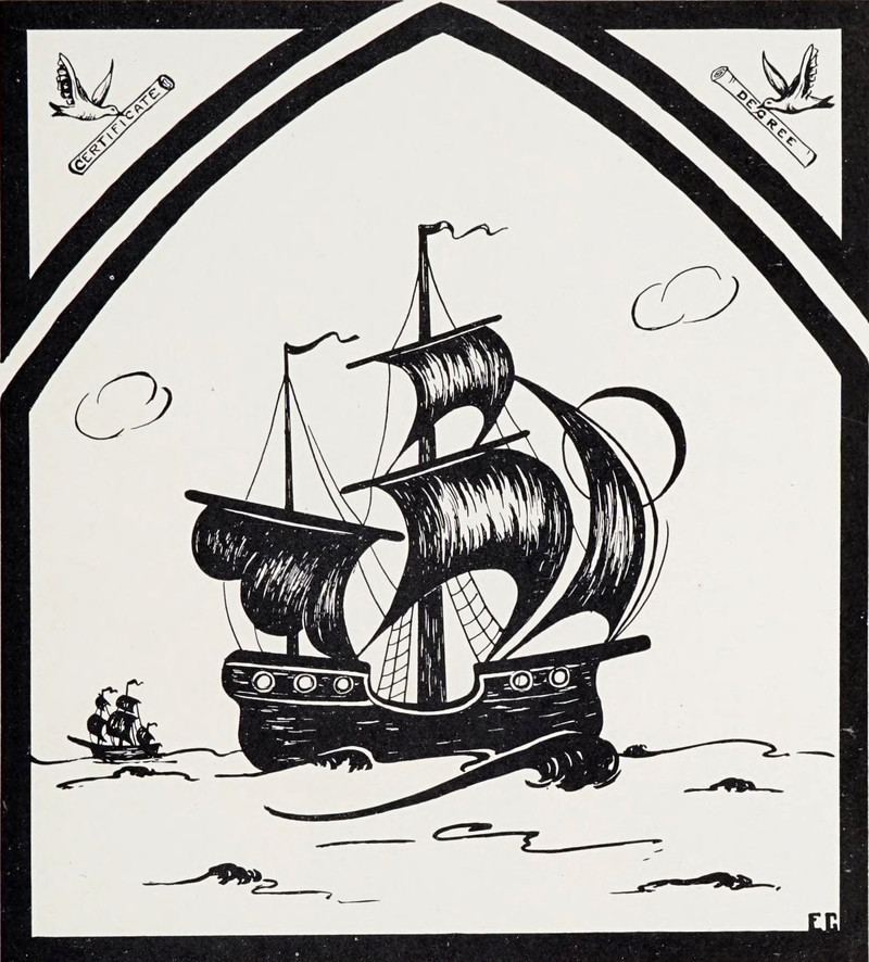 #vintage illustration #ship #vintage yearbook #yearbook #1920s #illustration