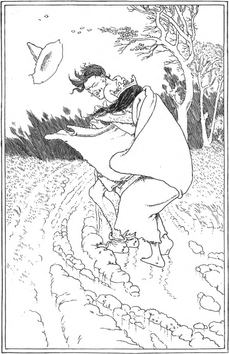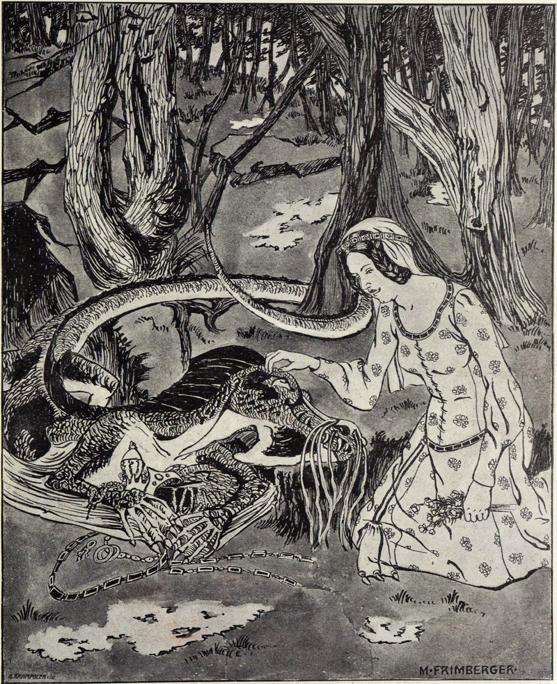 "In the middle of the night, when the griffin was snoring away lustily, Jack reached up and pulled a feather out of his tail." From The Fairy Ring by Kate Douglas Wiggin & Nora Archibald Smith, illustrated by Elizabeth MacKinstry, 1916.