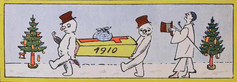 #vintage illustration #snowman #coffin #new year #1910 #pierrot