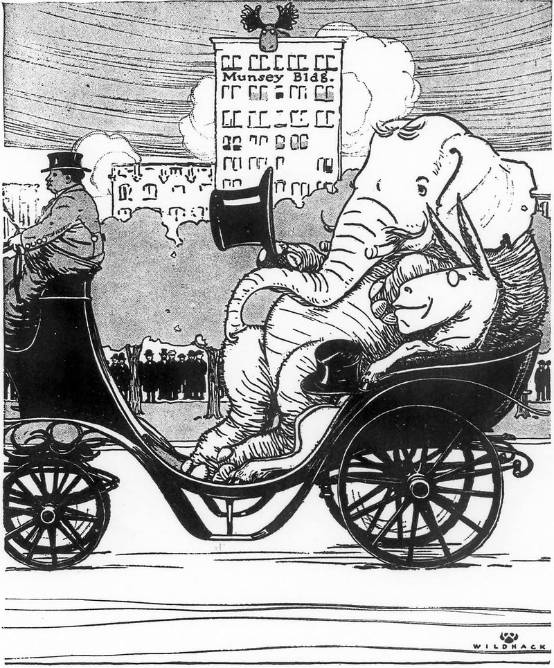 #vintage illustration #political cartoon #anthropomorphism #elephant #donkey #1910 #illustration