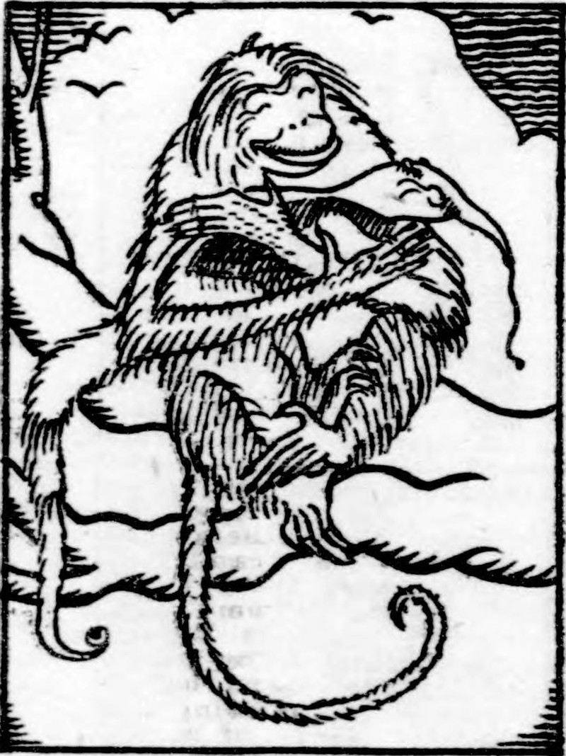 Today's monkey hugging an ant-bear is from The Duluth Herald, 1921.