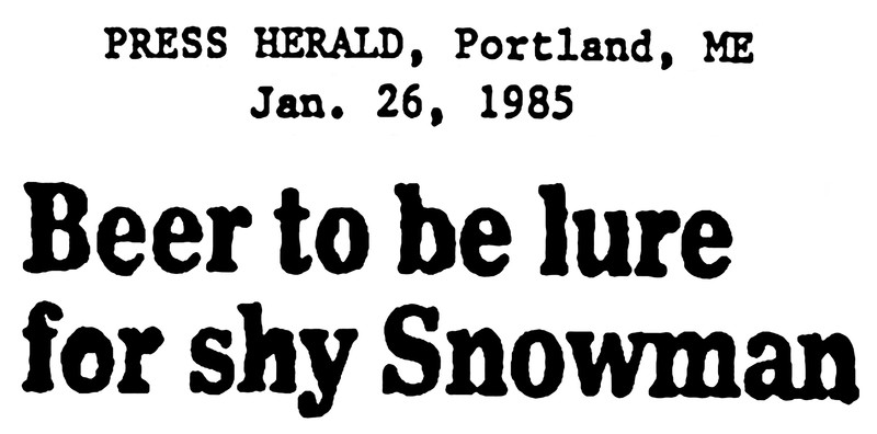 "Beer to be lure for shy [Abominable] Snowman."  From UFO Newsclipping Service, 1985.