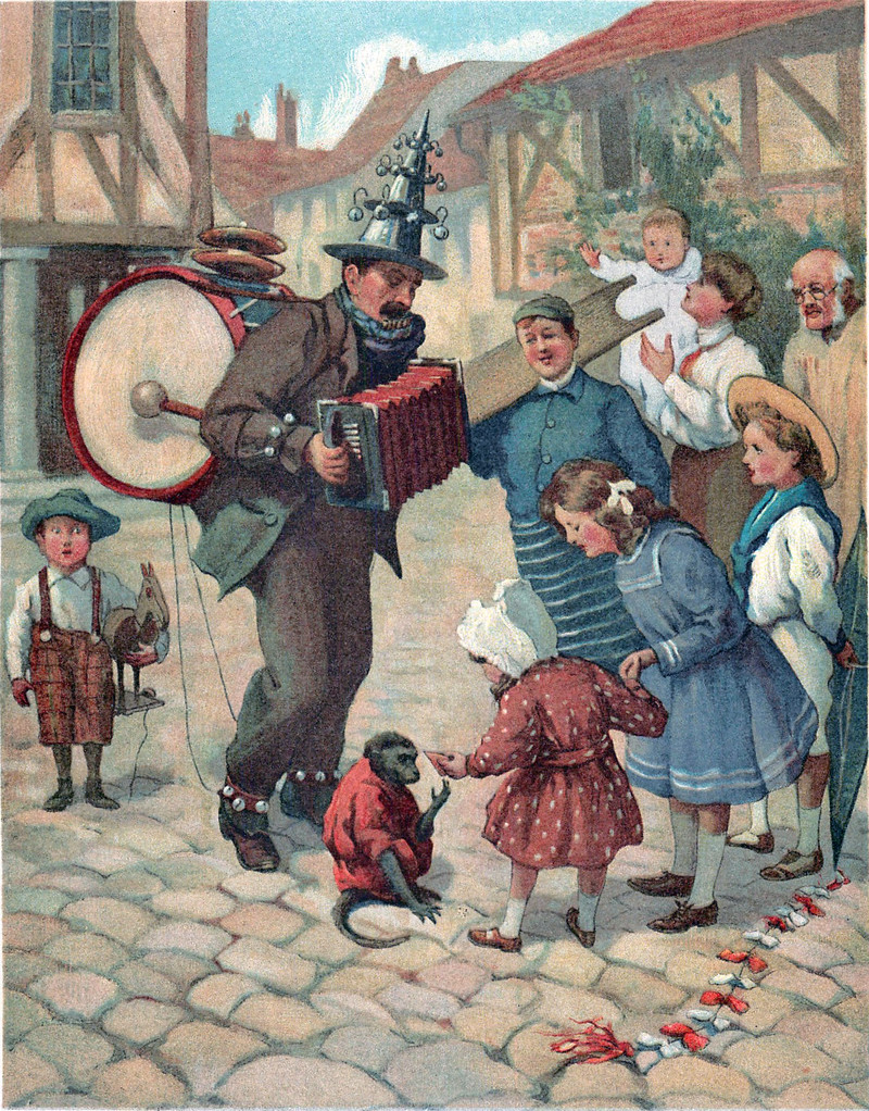 Accordion phobia or the "anti-squeezebox stance" (Alan Lomax) speaks to "the power struggles between social classes as well as to the makings, politics, and aesthetics of popular music" ( The Accordion in the Americas: Klezmer, Polka, Tango, Zydeco, and More). The caption here reads, "Would you mind moving further along? There is a sick lady in the house opposite." From Pearson's, 1911.