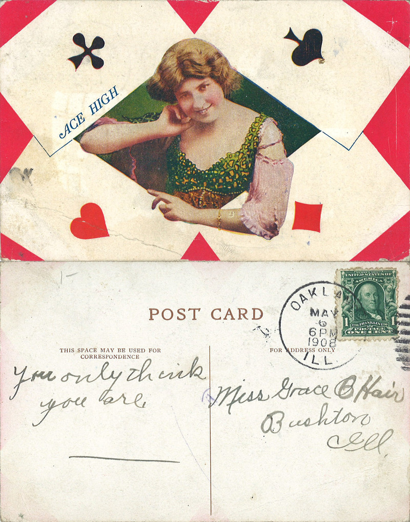 #playing cards #four aces #vintage postcard #self worth #ace high #postcard