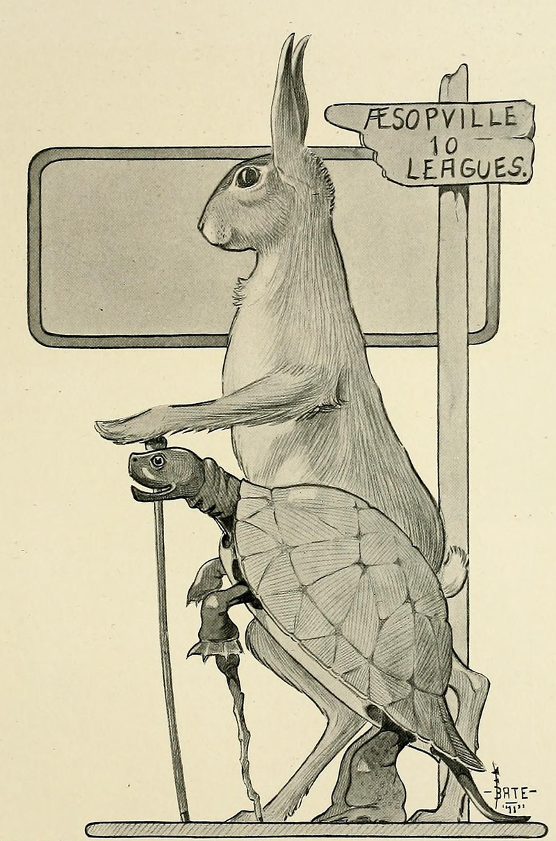 #vintage illustration #vintage yearbook #yearbook #hare #turtle #aesop's fables #tortoise and the hare #illustration