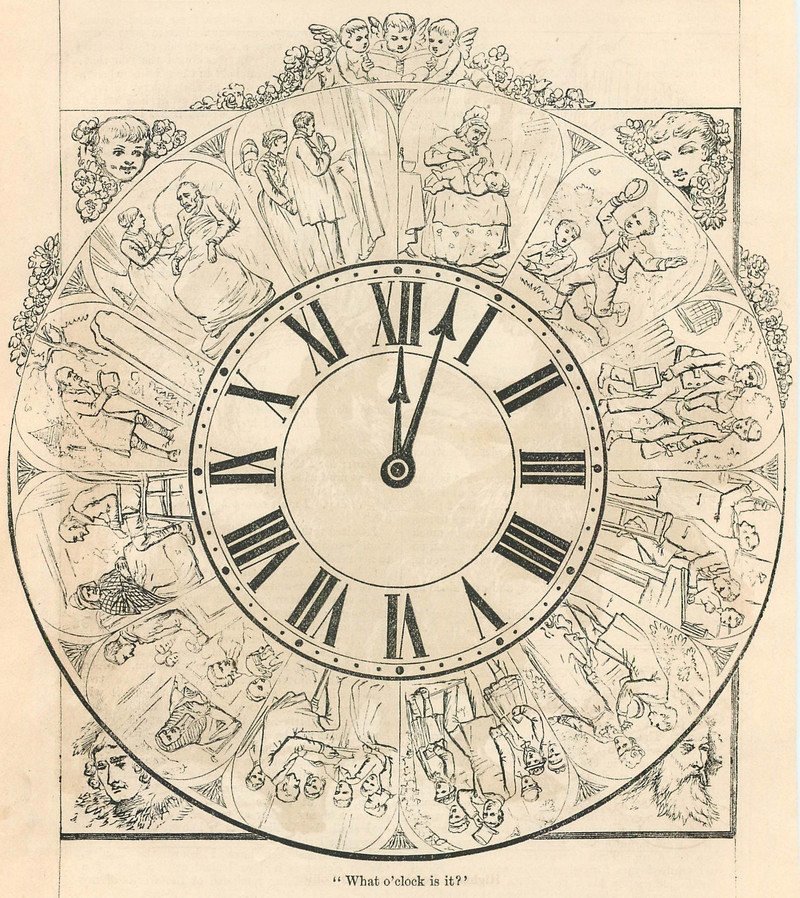 #vintage illustration #clock #lifespan #life cycle #birth to death #ages of man