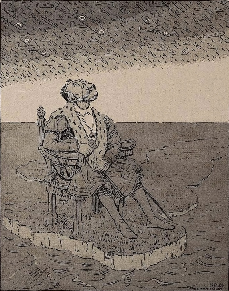 #vintage illustration #king #illustration #air raid