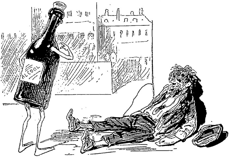 #vintage illustration #anthropomorphism #hallucination #illustration #alcoholic #giant bottle #delirium #wino