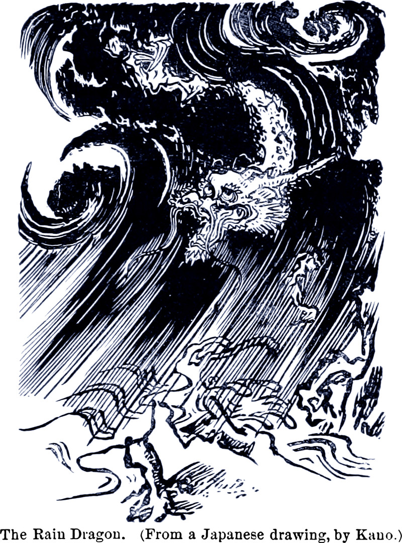 "The rain dragon, from a Japanese drawing by Kano."  From The Mikado's Empire by William Griffis, 1883.