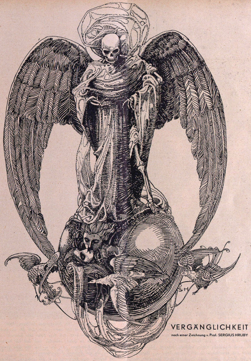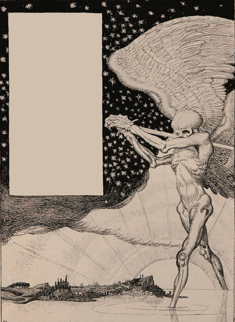 Our illustration of the angels of death (one green, one brown) is from L'Assiette au Beurre, 1908.