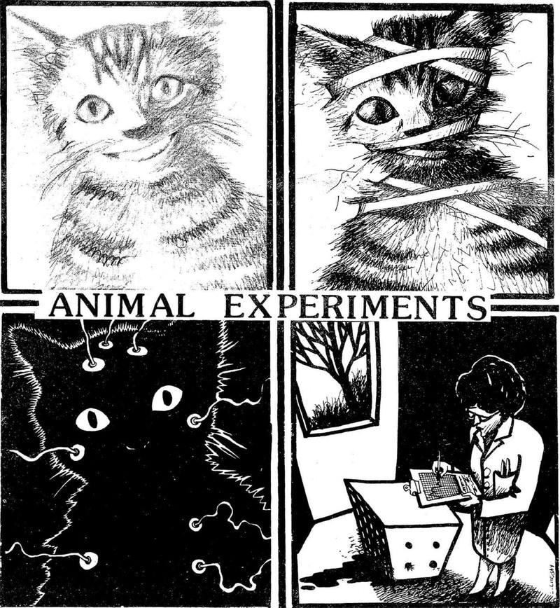 #vintage illustration #cat #vintage yearbook #yearbook #animal rights #animal cruelty #tested on animals #pre-med #animal experimentation
