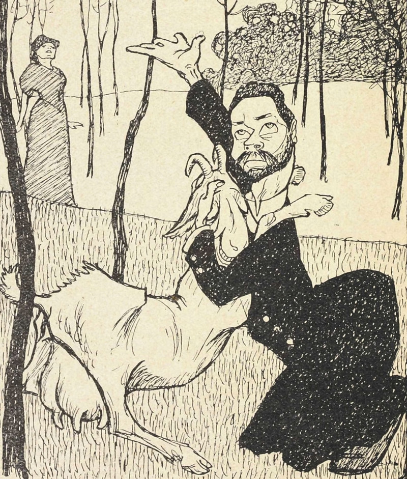 Here's a precursor to the "Have you hugged a goat today?" decal.  From Satirikon, 1908.