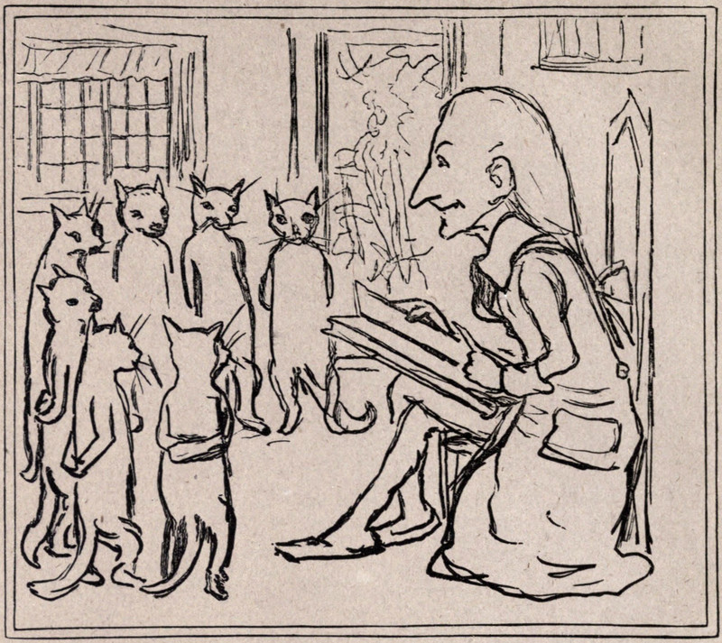 They all knew how to read the word "milk" and spell the word "mew."  From Dame Wiggins of Lee and Her Seven Wonderful Cats, Written Principally By a Lady of Ninety, 1923.