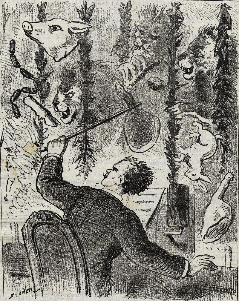 #vintage illustration #dead animals #meat #conductor #vegetarian nightmare #animal parts