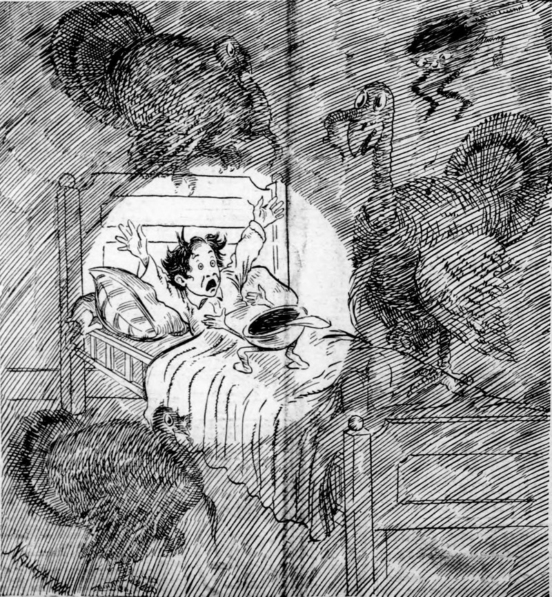Haunted by the ghosts of murdered turkeys, post-Thanksgiving.  From the Duluth Evening Herald, 1906.