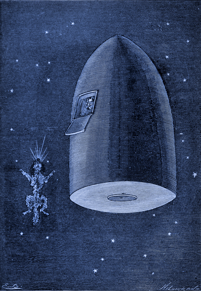 #space travel #outer space #jules verne #space dog #astronaut #space capsule #lunar lander #animal astronaut #animal testing #1870s #rocket