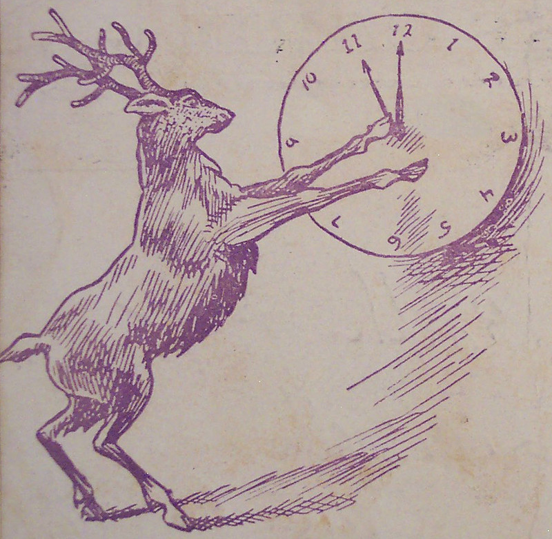 #vintage illustration #clock #1900s #elk #setting the clock #11 o'clock #animal time #illustration