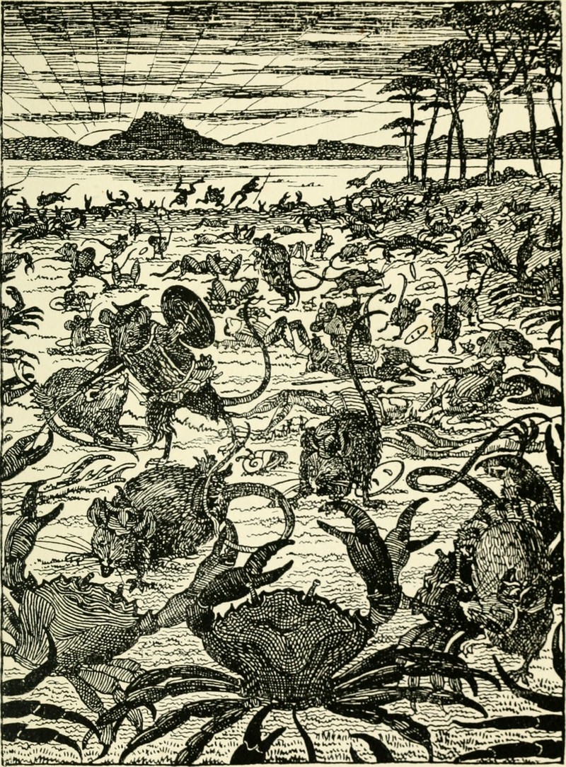 #vintage illustration #crab #mice #animal warfare #battling animals #wildlife #illustration