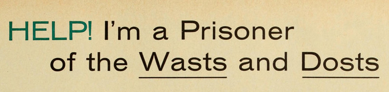 We're more a prisoner of "didsts," but we hope that won't make you leavest. The headline reads, "Help! I'm a prisoner of the wasts and dosts." From Together, 1967.