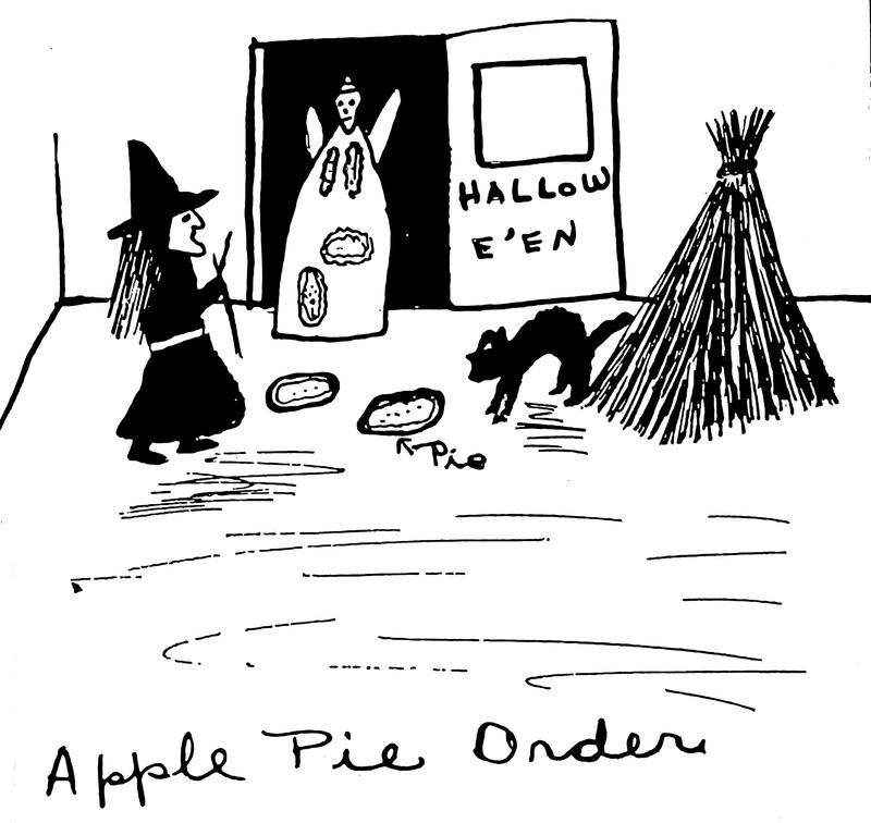 #vintage illustration #witch #vintage yearbook #yearbook #hallowe'en #1920s #illustration #apple pie #pie