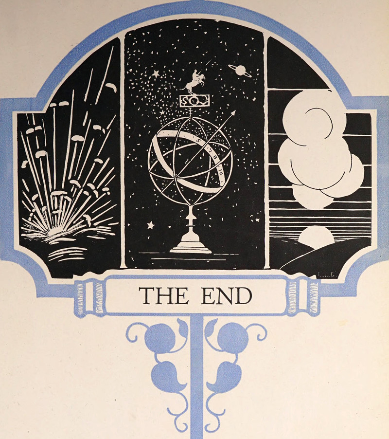 #vintage illustration #vintage yearbook #yearbook #the end #1920s #illustration #armillary sphere