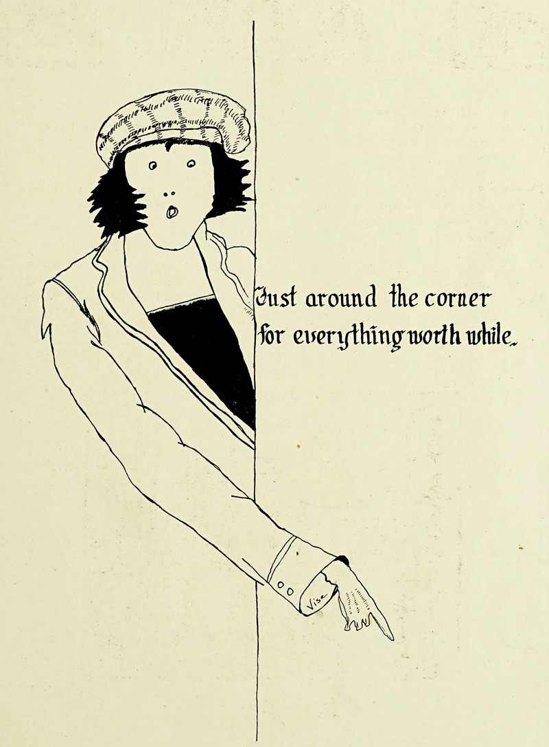 Great news -- everything worthwhile is just around the corner!  From Blackstone College's 1927 yearbook.