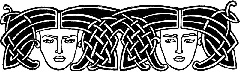 #vintage illustration #celtic #knot #faces #long hair #braided #art nouveau #1890s #illustration