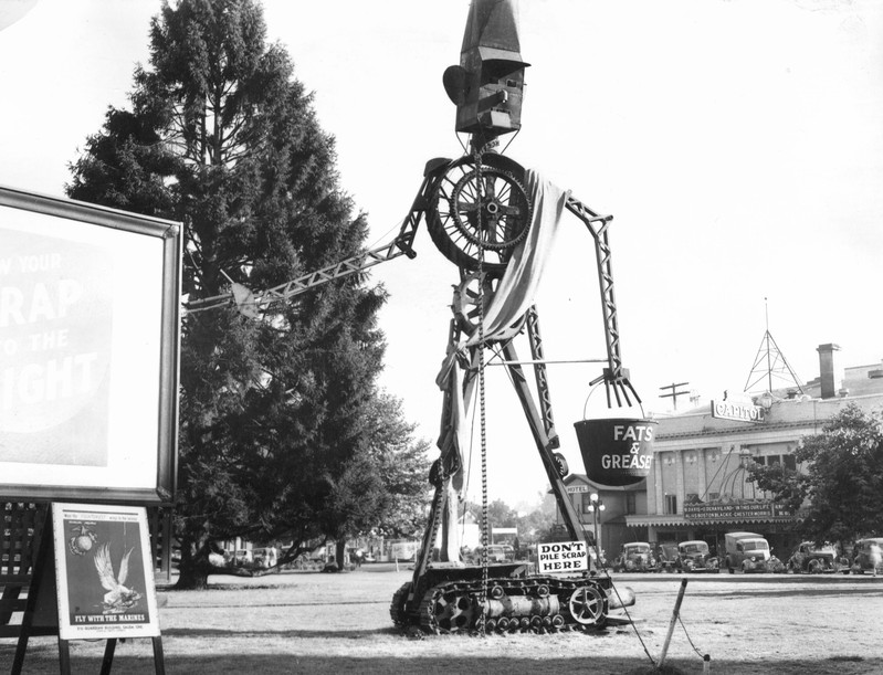 The Chemical Man is obviously not to be confused with the Chemical Chicken (also photographed by Leslie Jones, date uncertain), nor (while we're at it) with Scrappo (the mechanical scrap metal creation made by the Marion County salvage committee, Salem, Oregon, 1942).