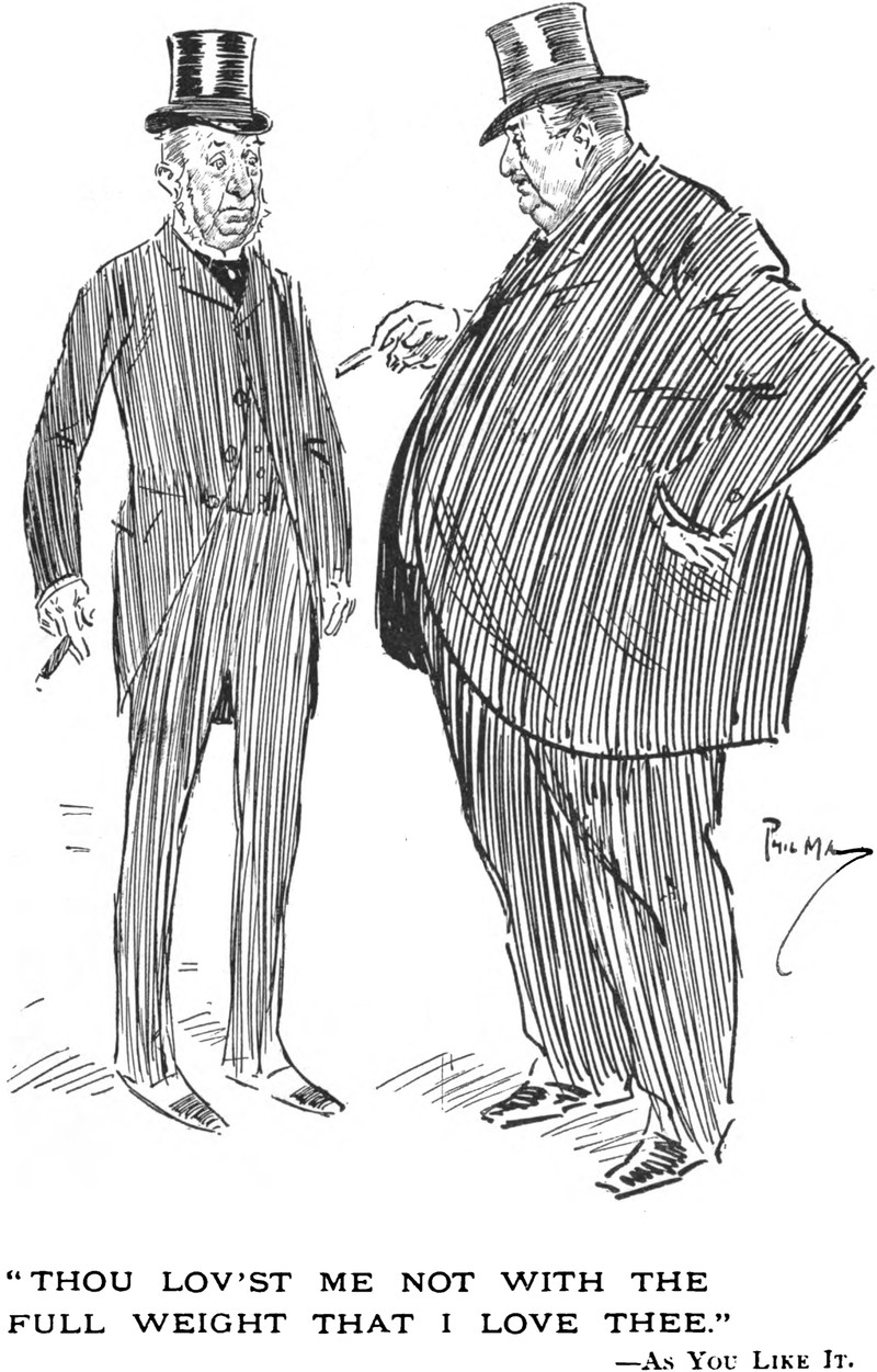 "Thou lov'st me not with the full weight that I love thee" (As You Like It).  By Phil May for The Sketch, 1902.