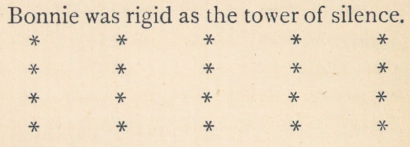 As we proved previously, i t's a bizarre and wonderful phenomenon that whenever you see rows of asterisks in a book, they invariably illustrate the text either following or preceding them.