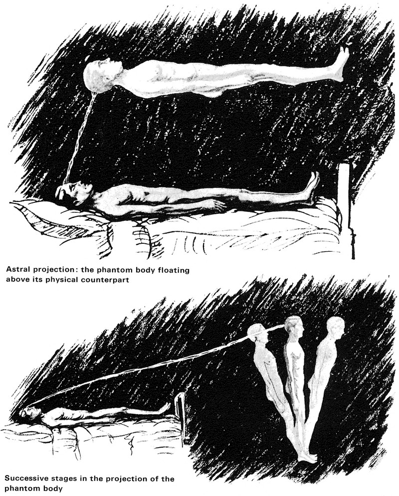 Astral projection and the phantom body.  From Encyclopedia of the Unexplained by Richard Cavendish, 1974.