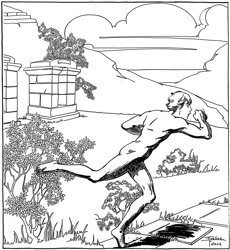 The Athenian Pheidippides runs the marathon.  From Wee Wisdom, 1933.