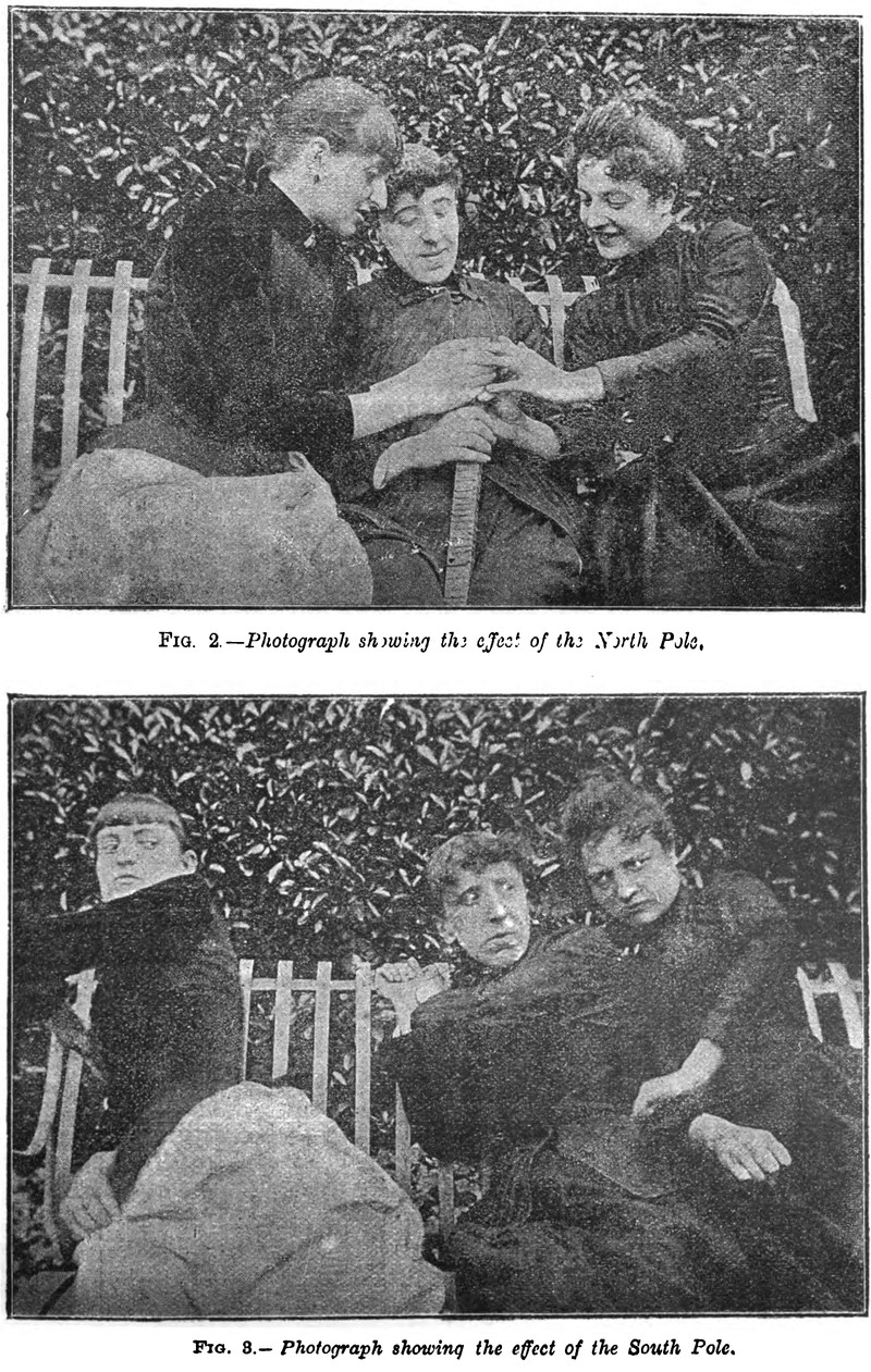 The effects of the north and south poles.  From The Practice of Hypnotic Suggestion by George Chadwick Kingsbury, 1891.