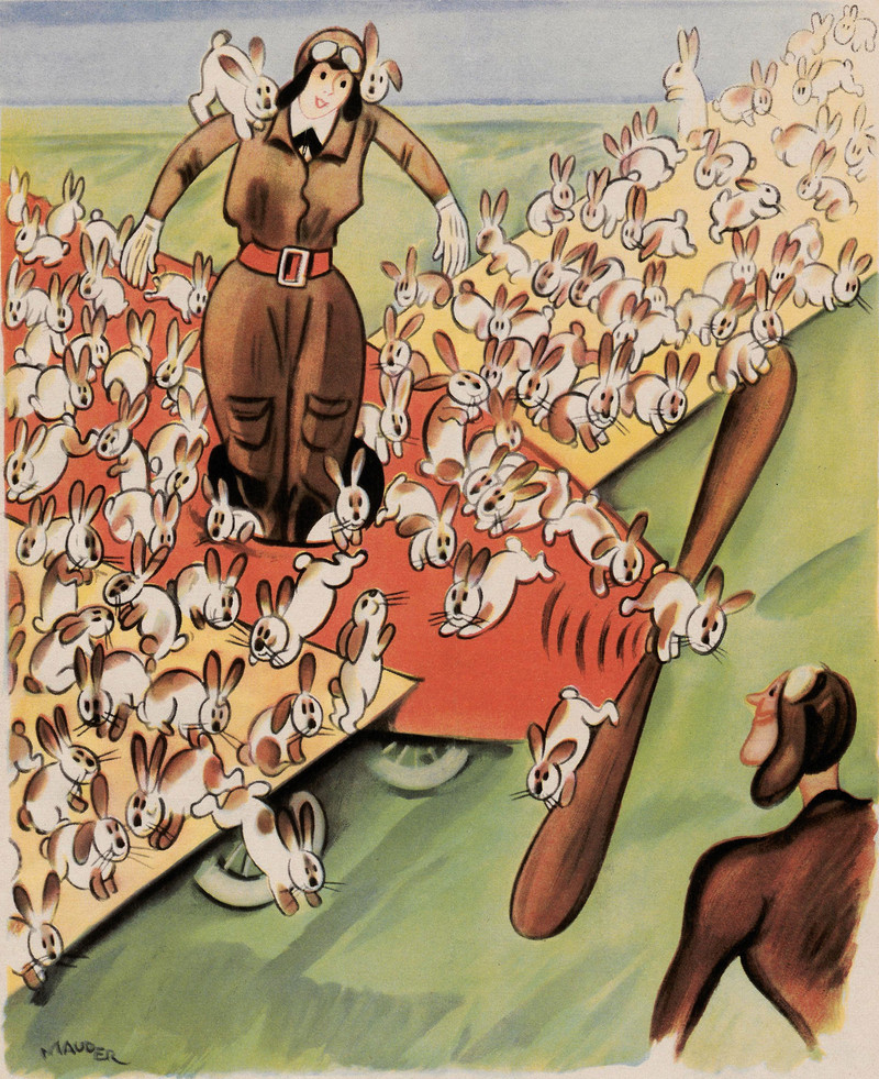#vintage illustration #bunnies #rabbit #1930s #airplane #aviation #aviator #illustration #aviatrix