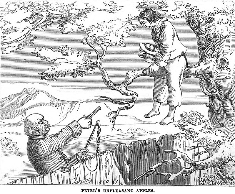 "Peter's unpleasant apples."  From Fairy Tales, written and illustrated by Alfred Crowquill, 1857.